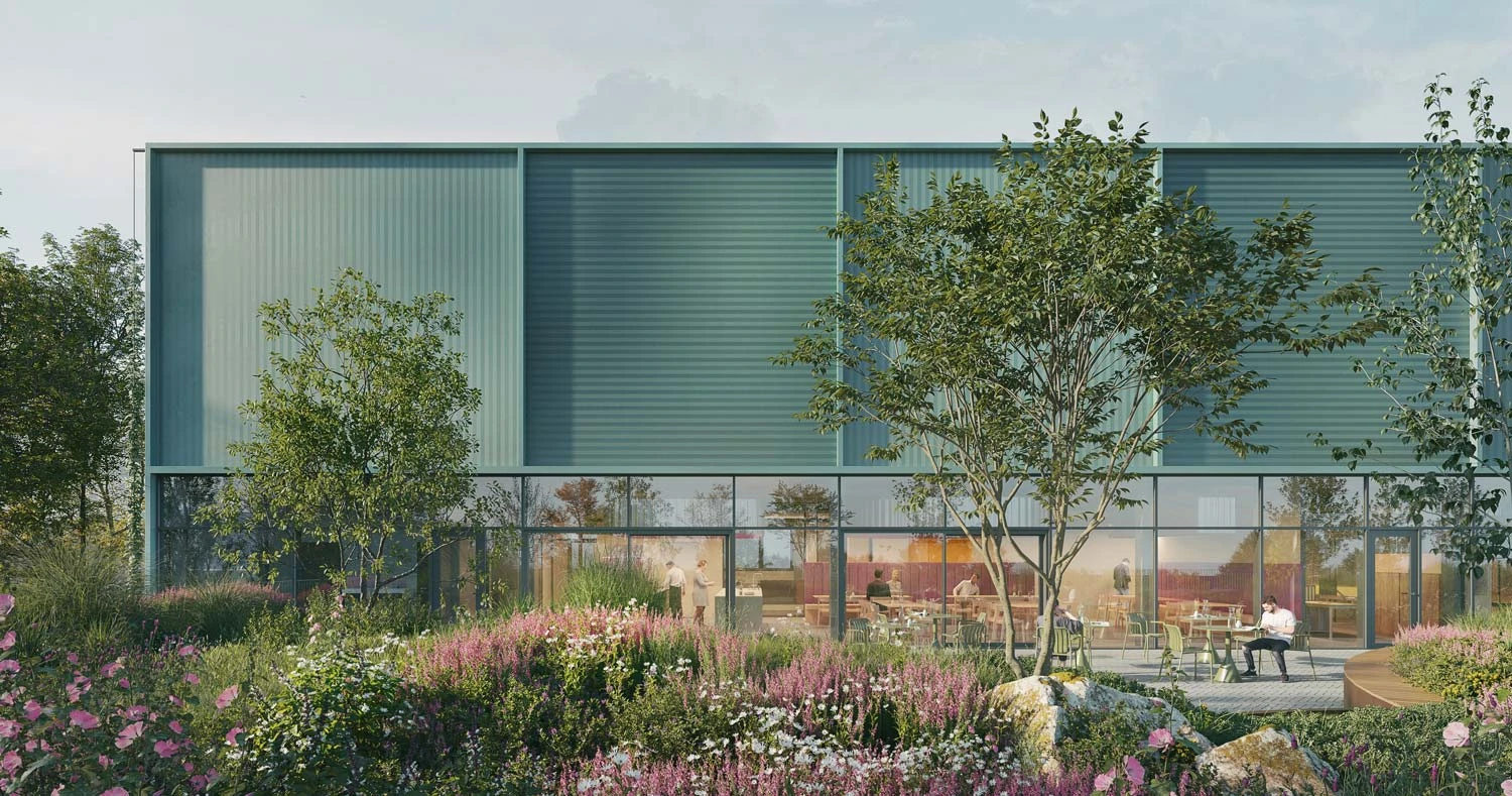 The garden creates a spatial extension of the office and social spaces into the outdoor area and invites diverse uses in a natural environment. The intensive greenery and tree planting in troughs serve as natural cooling and retention for rainwater.
